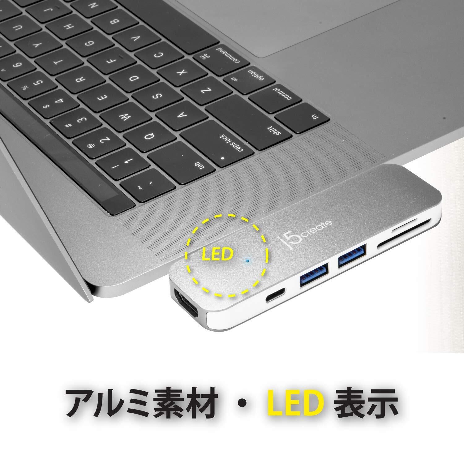 j5create USB-C 7in1 ミニ ドッキングステーション マルチ ハブ Power Delivery 60W対応【USB-C x 1 (PD3.0&データ伝送 両対応)、USB3.0 x 2、4K HDMI、SD/MicroSDカードリーダー】 プラグ&プレイ ドライバ不要 超スリム設計 アルミニウム筐体 Windows / Chrome OS / MacBook Pro / MacBook Air / M1/M2/Pro/Max対応 / Surface Book など Type-C機器対応 JCD386-EJ