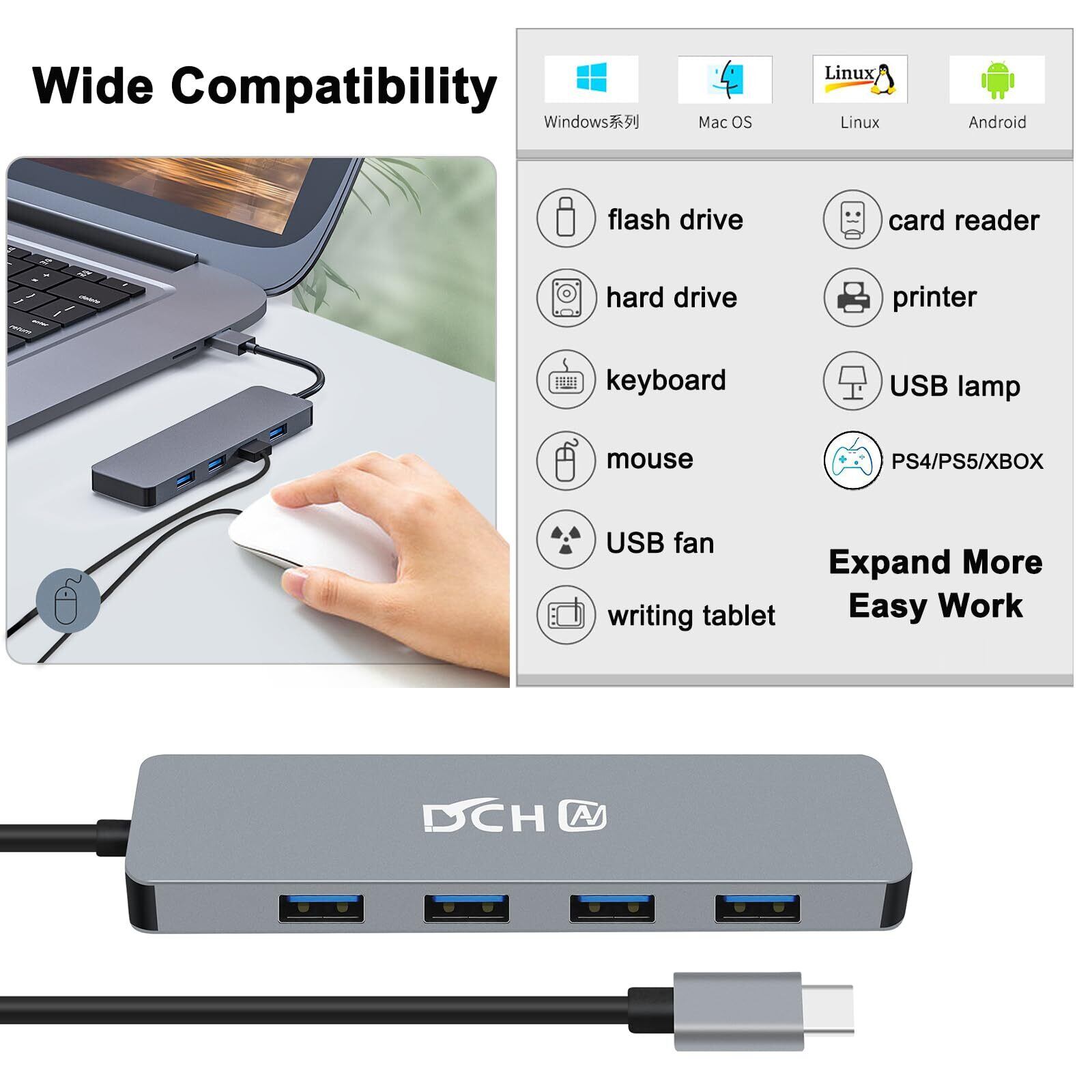 DCHAV USB C ハブ 4 ポート USB 3.0 拡張 超スリム USBハブ USBスプリッター マルチポート アダプター 軽量 ノートPC プリンター USBメモリ HDD キーボード マウス Windows Mac Linux Chrome対応