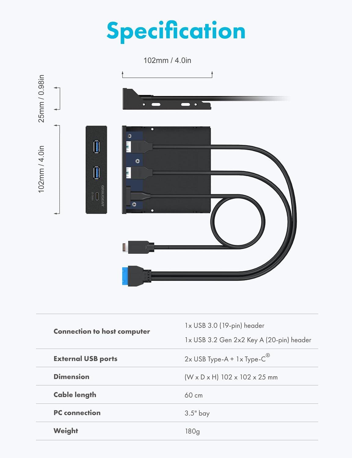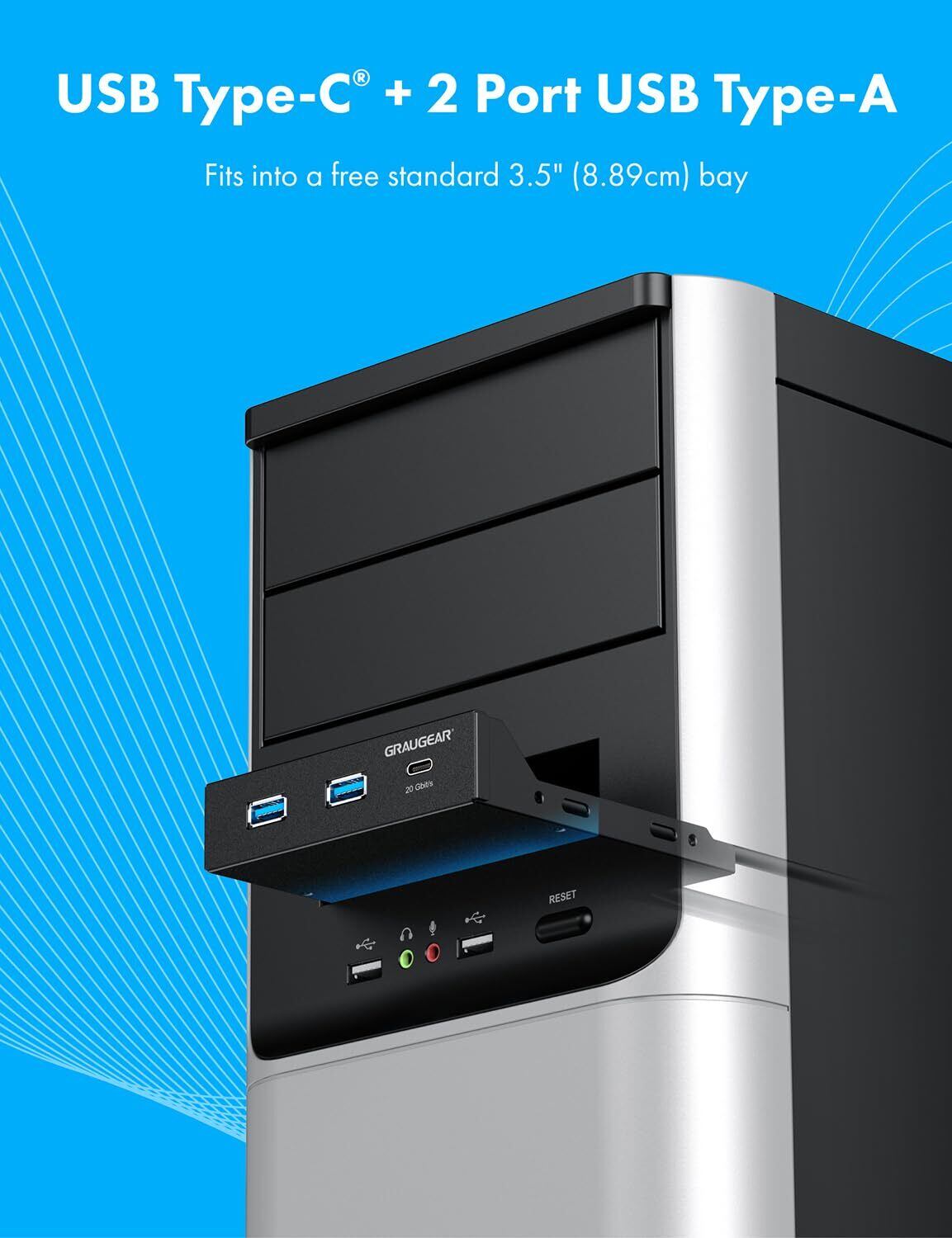 GRAUGEAR 3.5''インチベイ対応 PCマルチフロントパネルに搭載 3ポートハブ 20Gbps USB 3.2 Gen2x2 Type-C USB-Cポート、USB 3.0コンピューター用 3.5インチコンピューターシャーシのフロントブラケットに適合 [G-MP01]