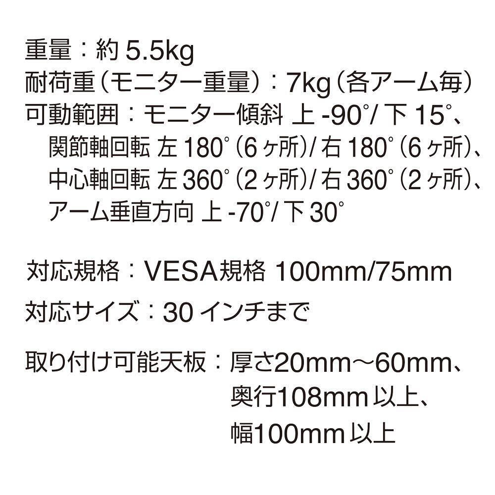 【重量】約5.5kg、【耐荷重(モニター重量)】7kg(各アーム毎)