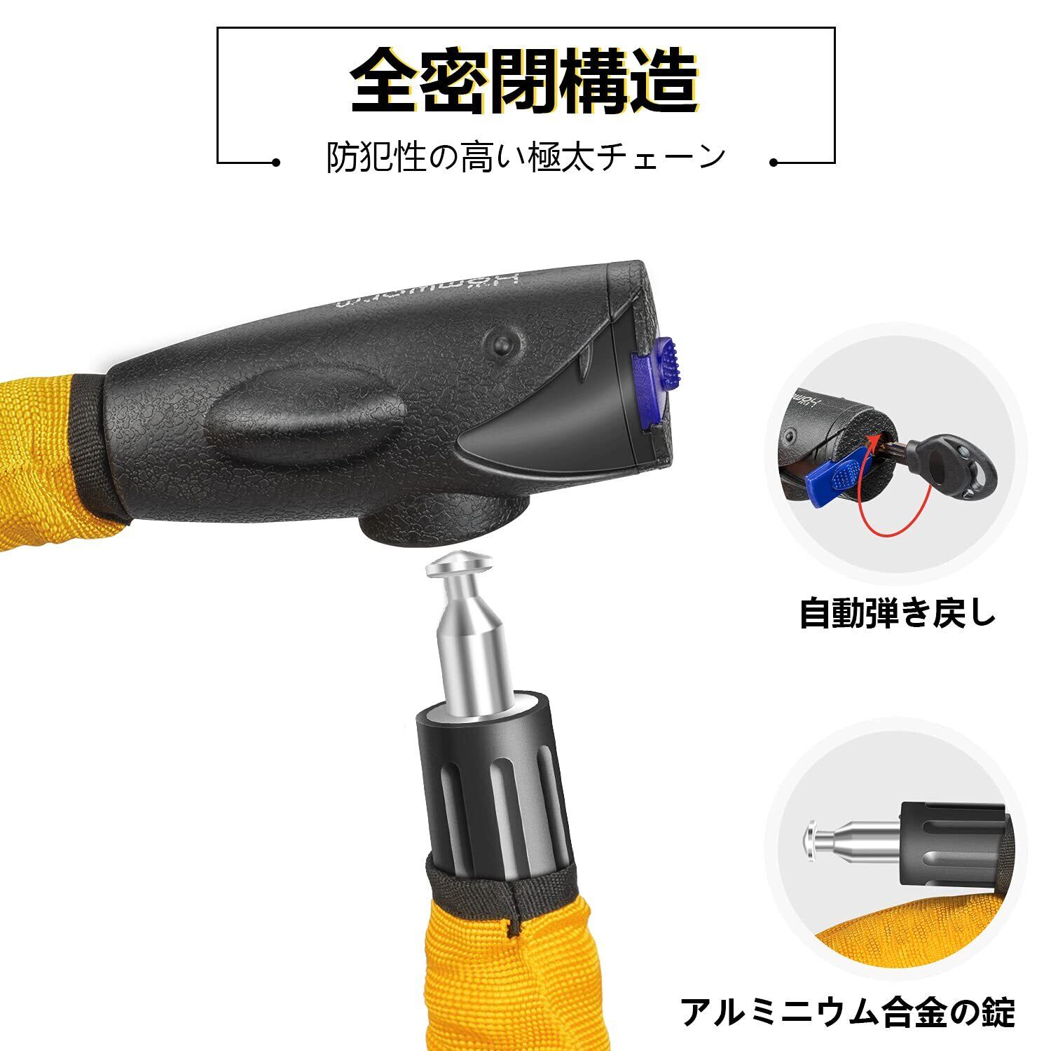 Homwarm バイクロック チェーンロック バイク 自転車 ワイヤーロック φ(直径)22mm×1200mm 頑丈 盗難防止 鍵3本セット (きいろ)