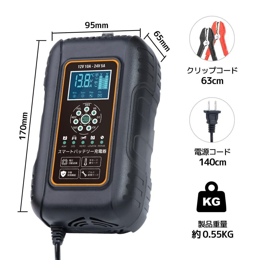 【人気商品】定格10A [ パルス修復 PSE取得済み] 緊急時 「サルフェーション除去(脱硫)」 パルス充電器 AGM/GEL 車充電可能 12V/24V鉛/リチウム電池両用 LiFePO4 リン酸鉄リチウム電池対応 10A【9月新登場】7段階全自動スマート充電 バイク・自動車・農機・建設機械・小型船舶など 日本語説明書 リョクエン(LVYUAN)全自動パルスバッテリー充電器 【正規品】 BC-10
