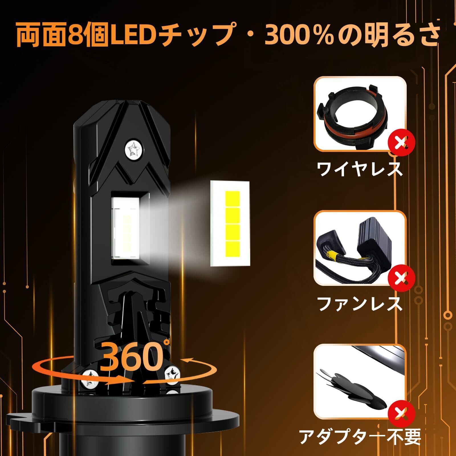 【高輝度LEDチップ】H7 LEDヘッドライトは色温度6500kの高品質LEDチップを採用し、360度均一に発光でき、ハロゲンバルブより300%明るいです。 高輝度純白照明は前方を照らすだけでなく、周囲の環境もよく見え、安全な夜間運転ができます。