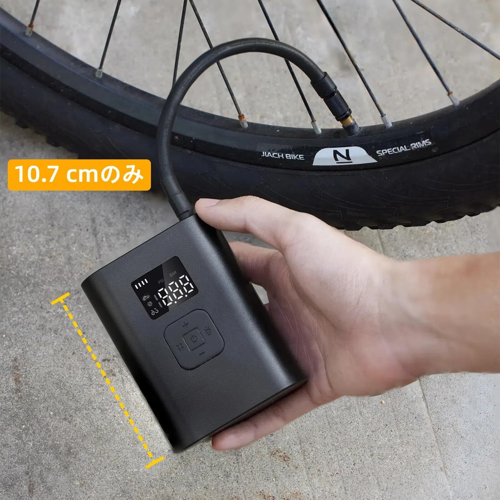電動空気入れ 自転車 ロードバイク 空気入れ 電動 バイク 車 コードレス 4000mAh 大容量バッテリー 最大圧力150PSI 収納に便利わずか 365g 軽量 小型 ポータブル 仏/英/米式バルブ対応 LED懐中ライト付き 自動停止 エアポンプ モバイルコンプレッサー 収納袋 日本語説明書付き