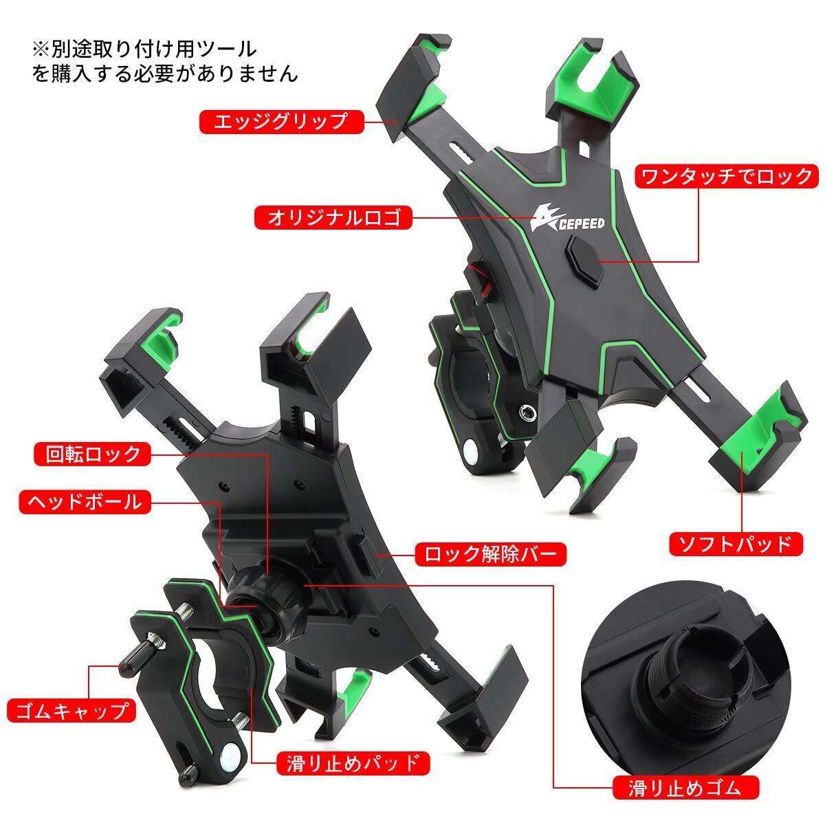 ACEPEED ワンタッチ自転車用スマホホルダー スマホマウント 携帯ホルダー スマホ固定 しっかり取付 落下防止 片手操作 簡単取付 360度回転 サイクリング 自転車、電動自転車、マウンテンバイク、スクーター、ダートバイク、ロードバイク、バイク用 iPhone (iphone15シリーズ含む) Android多機種対応 - グリーン