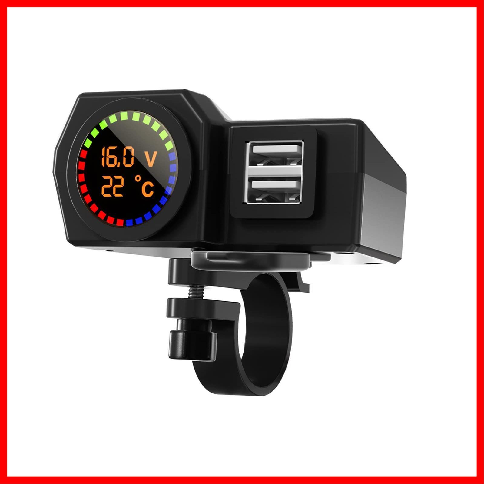 SHEAWA バイク USB充電器 USB電源 USB2ポート 3.4A 電圧計 温度計 電源スイッチ オートバイのハンドルやサイドミラーに取り付け可能