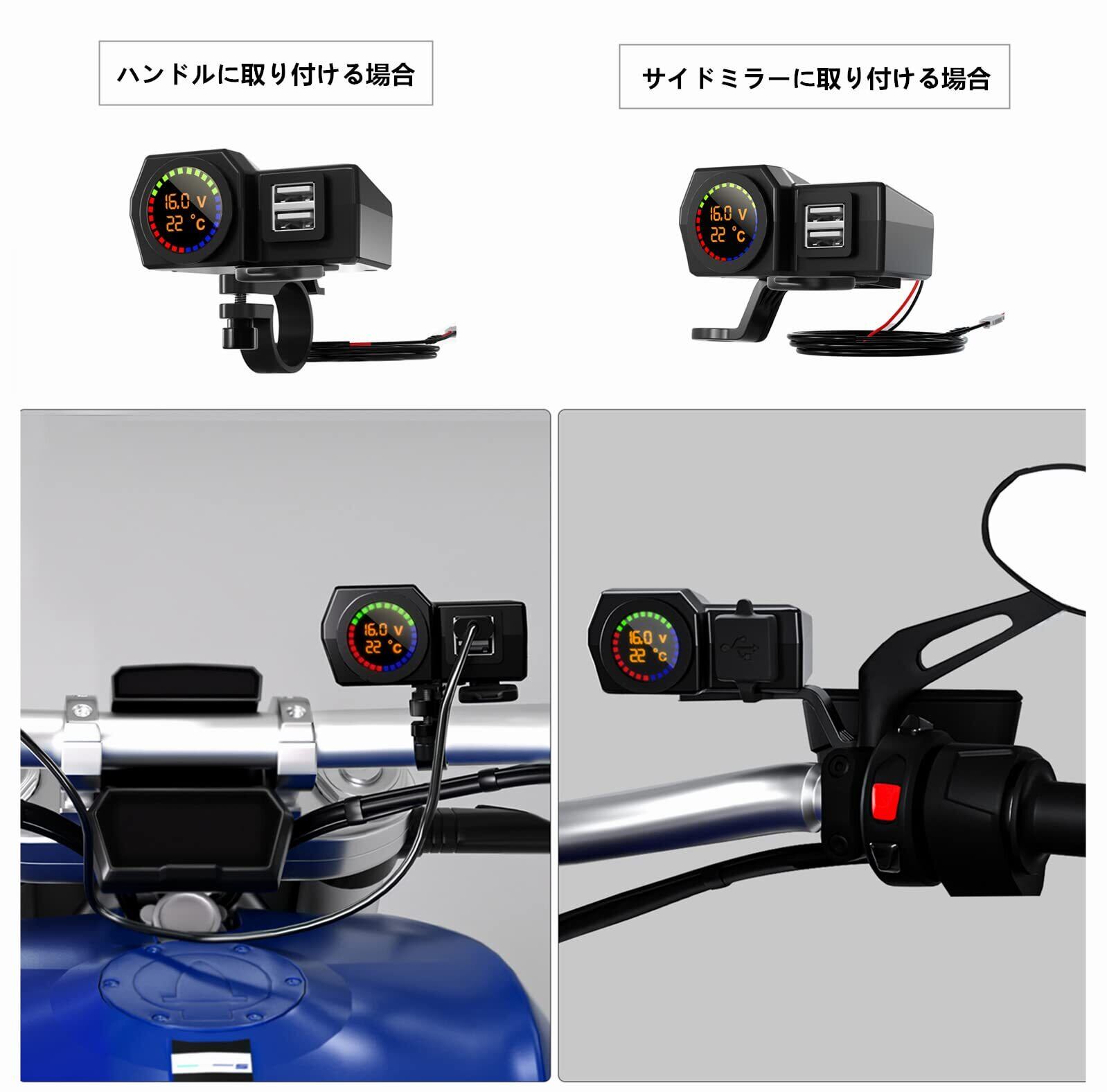 サイズ:USB2ポートUSB2ポート 3.4A USB電源 電圧計 USB充電器 温度計 バイク 電源スイッチ SHEAWA オートバイのハンドルやサイドミラーに取り付け可能