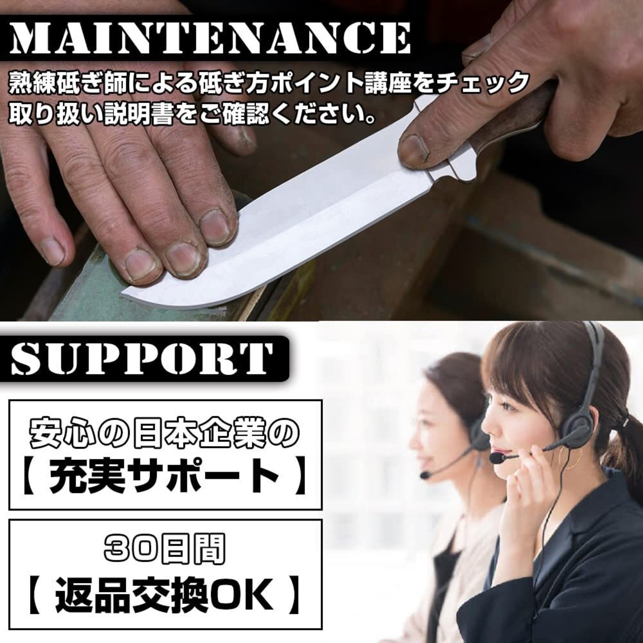 【メンテナンス】濡れた場合はしっかり乾かし、コンパウンド(研磨剤)で研磨するなどし、保存してください。銃刀法違反となりますのでキャンプなどの使用用途以外での持ち運びはお控えください。