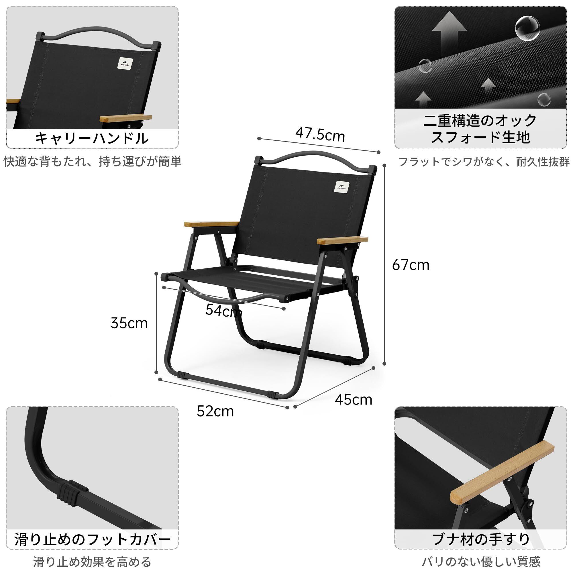 色:ブラック折りたたみ 120kg 椅子 座高35cm 耐荷重 持ち運びに便利 快適座り心地 組み立て不要 耐久性 コンパクト BBQ 軽量2.7kg キャンプ 花見 アウトドアチェア 登山 Naturehike公式ショップ バーベキュー