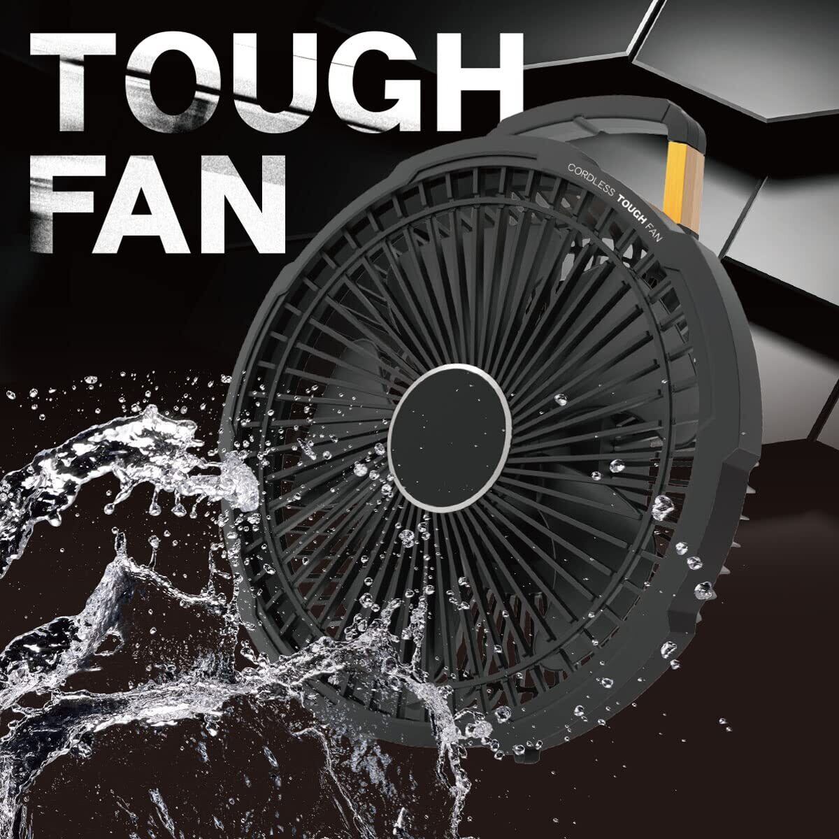 トップランド 卓上扇風機 コードレス タフ FAN [ ホーム & アウトドア ] 防水 ラバーボディ 3電源対応 (AC + USB + 別売乾電池) 風量調節3段階 多目的スタンド ブラック SF-TF10BK