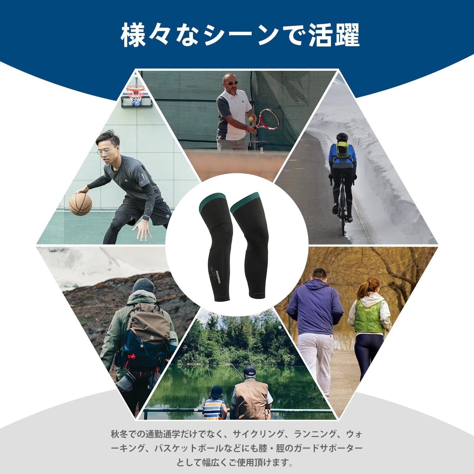 色:ブラック/グリーン_サイズ:S-Mランニング 自転車 サイクリング ロング スポーツ 吸汗速乾 滑り止め 伸縮性 アウトドア 通気性 ニーウォーマー メンズ 保温 防風 防寒 レディース 裏起毛 レッグカバー 男女兼用 レッグウォーマー ROCKBROS