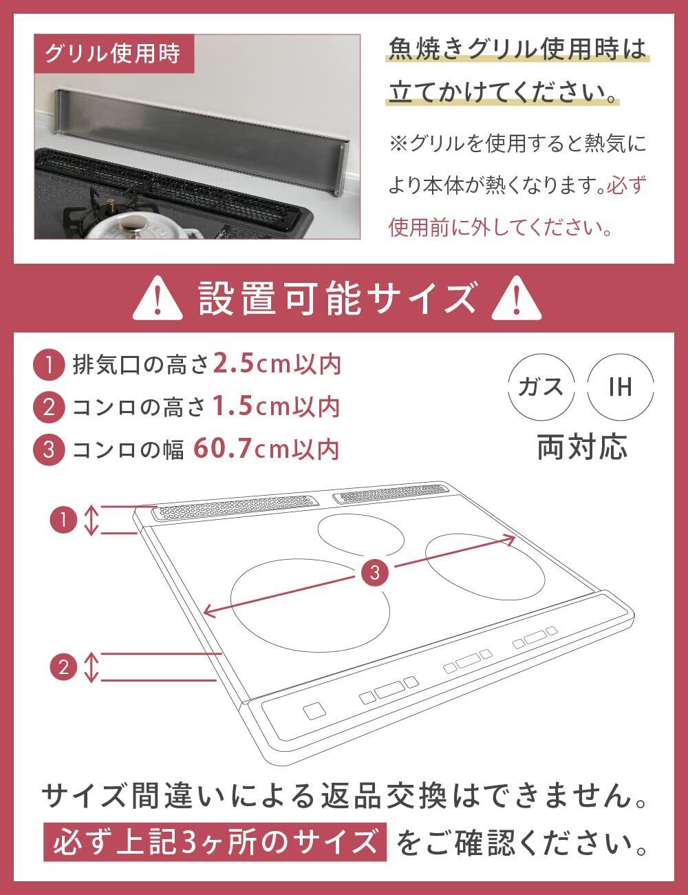 [CICADA] 排気口カバー スマート フラット コンロ 薄型 スリム 燕三条 (60cm, シルバー(ステンレス))