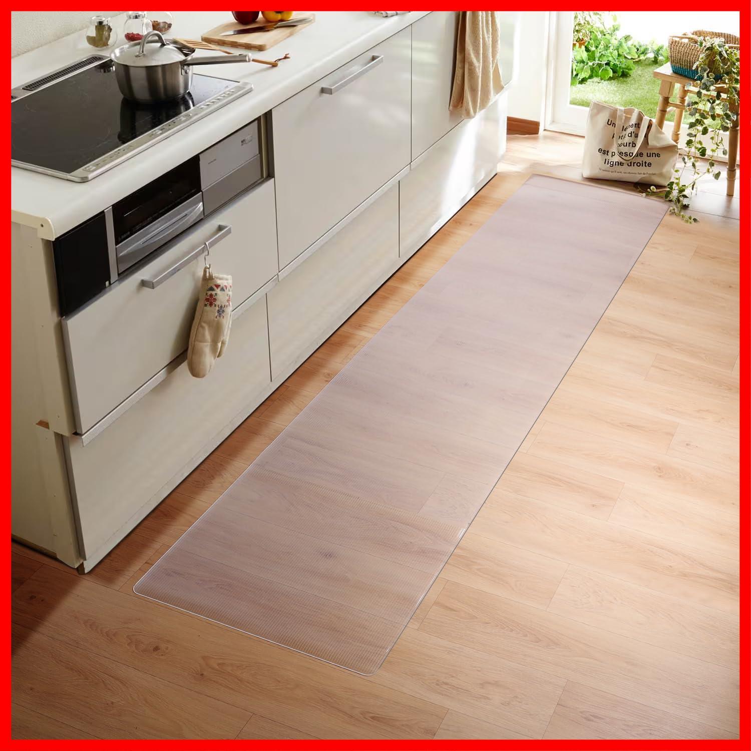 キッチンマット PVC 60×240cm 大判 厚さ1.5mm 透明マット ソフト 撥水 おしゃれ 汚れ防止 お手入れ簡単 床暖房対応 滑り止め クリアマット 台所マット 透明マット (240*60cm)