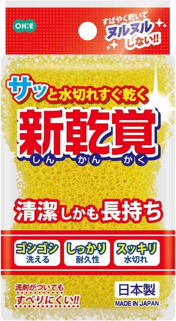 【在庫処分】オーエ スポンジ イエロー 約縦11.5cm×横7.3cm×奥行4cm 新乾覚 キッチン用 水切れ 日本製 5個セット