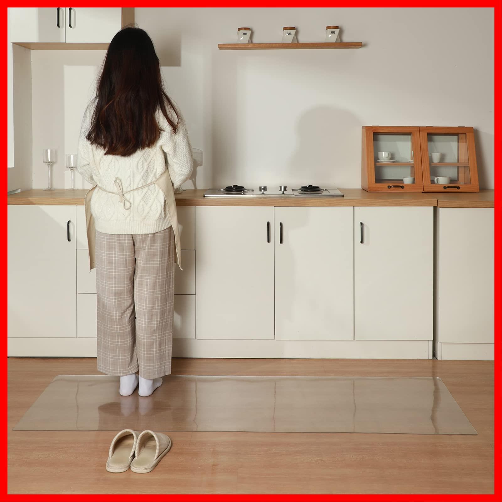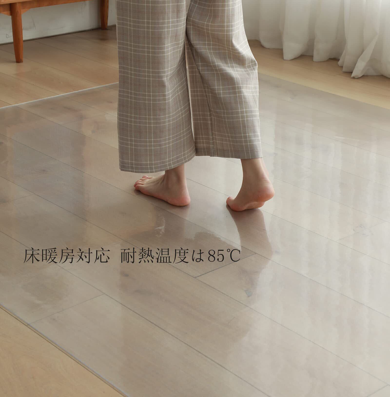 キッチンマット クリア PVC 材質:PVC 床 保護シート透明フローリングマット 新世代のアップグレードされたPVC素材でできており 変形しにくい、 耐衝撃性、凹み防止効果抜群で 床暖房対応 耐熱温度は85℃!騒音防止にも役立ちますよ.