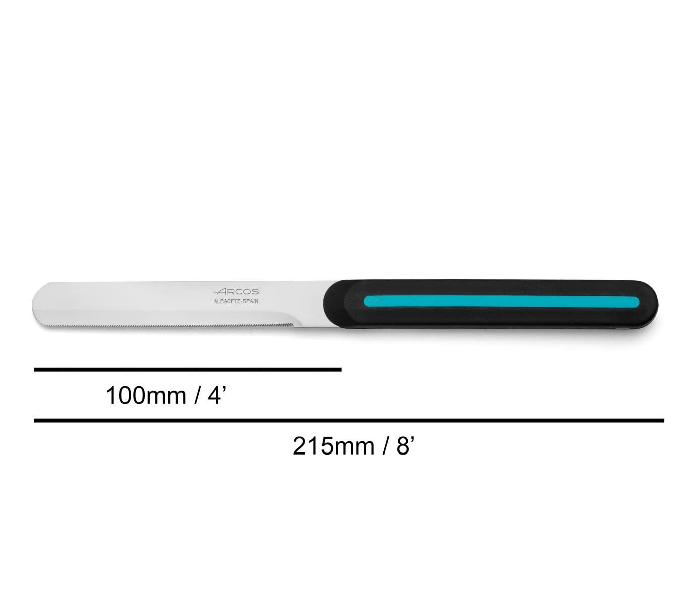ARCOS アルコス テーブルナイフ ギザ刃 スペイン製 食洗機対応 ニトラムステンレス鋼 (刃渡り10cm, ブラック/グリーンライン, 品番373632)