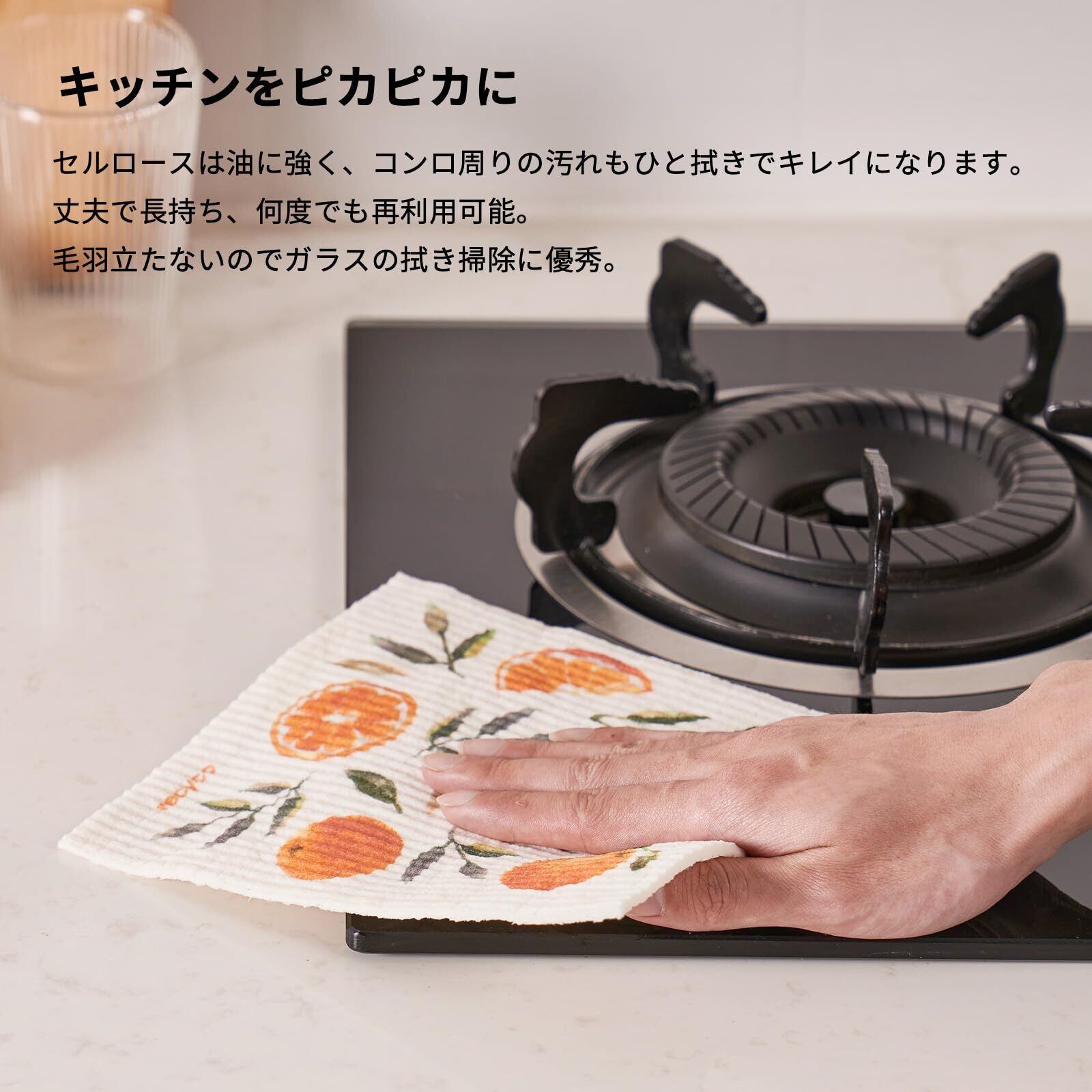 Recyco セルロース ふきん クロス 5枚セット キッチンクロス 17×19cm 天然繊維 台拭き 防臭 スポンジワイプ フルーツ ぐんぐん吸水 速乾 耐久性 ランチョンマット キッチンタオル 抗菌 断熱マット