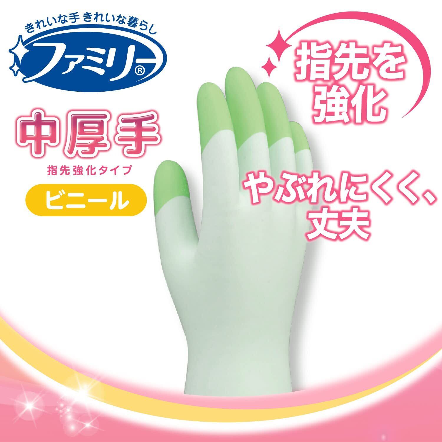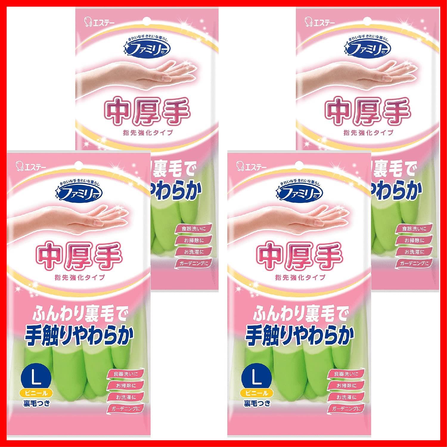 ファミリー [まとめ買い] 家庭用手袋 ビニール 手袋 中厚手 指先強化 Lサイズ グリーン×4個 キッチン 食器洗い 掃除 洗濯 ガーデニング